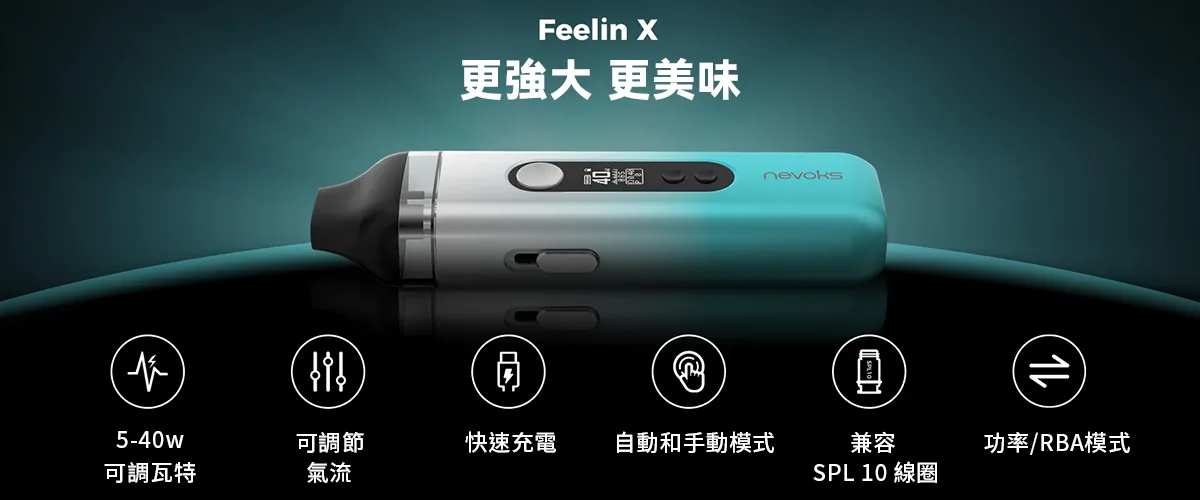 | NEVOKS FEELIN X Pod 40W | 紅色套裝, 藍色套裝, 綠色套裝, 0.3Ω成品芯(5入), 0.6Ω成品芯(5入), 0.8Ω成品芯(5入), 1.0Ω成品芯(5入) |