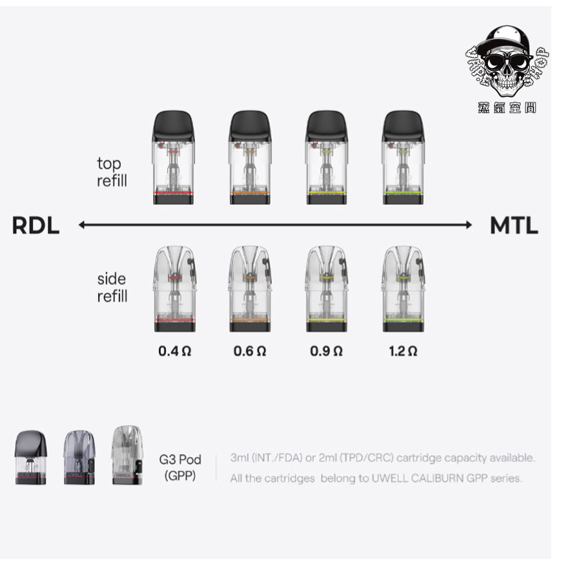 | CALIBURN GPP G4 空煙彈 | G3 0.4Ω 側灌4入/盒, G3 0.6Ω 側灌4入/盒, G3 0.9Ω 側灌4入/盒, CALIBURN GPP 一體式艙0.4Ω(1盒3入), CALIBURN GPP 一體式艙0.6Ω(1盒3入), CALIBURN GPP 一體式艙0.9Ω(1盒3入) |
