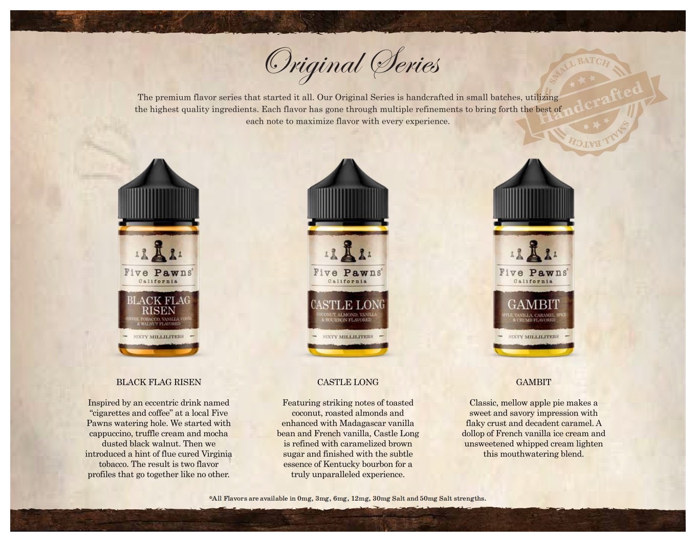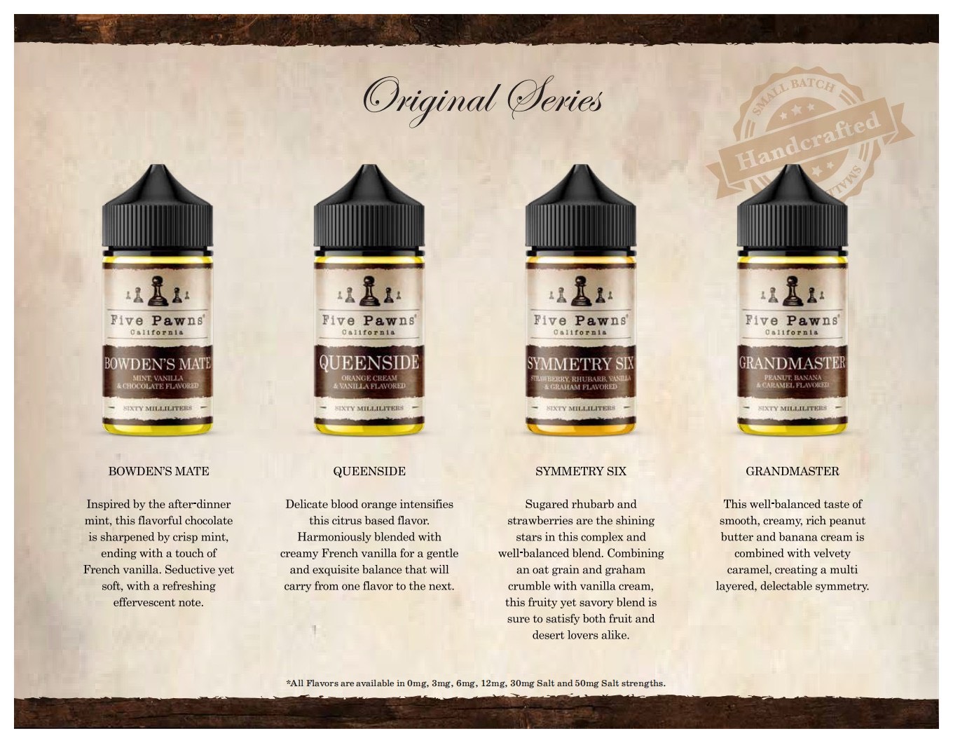 Five Pawns、電子煙油推薦、美國煙油、甜點煙油、煙草煙油、Castle Long、Grandmaster、Black Flag Risen、Gambit、Symmetry Six、Bowden’s Mate、千里單騎、王牌騎手、黑棋升起、對稱六、博登殺將、五子棋煙油