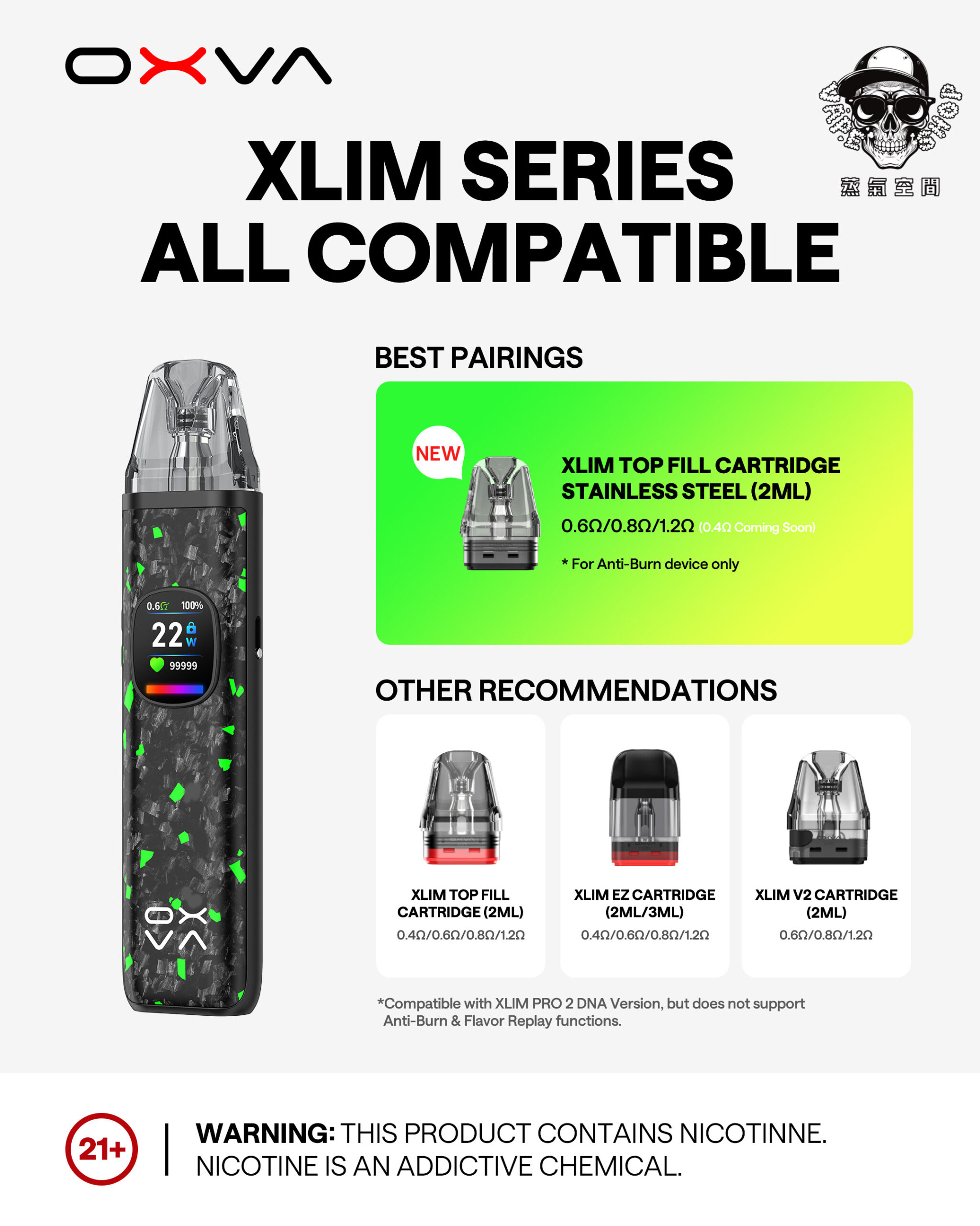 | OXVA Xlim Pro 2 DNA | Luminous Forged Carbon Fiber 夜光鍛造碳纖, Frost Titanium Blue 霧鈦藍, Nebula Gray – 星雲灰, Silk White – 絲滑白, Silk Brown – 絲滑棕, 原廠空煙彈(0.4 Ω / 3 入裝), 原廠空煙彈(0.6Ω / 3 入裝), 原廠空煙彈(0.8 Ω / 3 入裝), 原廠空煙彈(1.2 Ω / 3 入裝 |