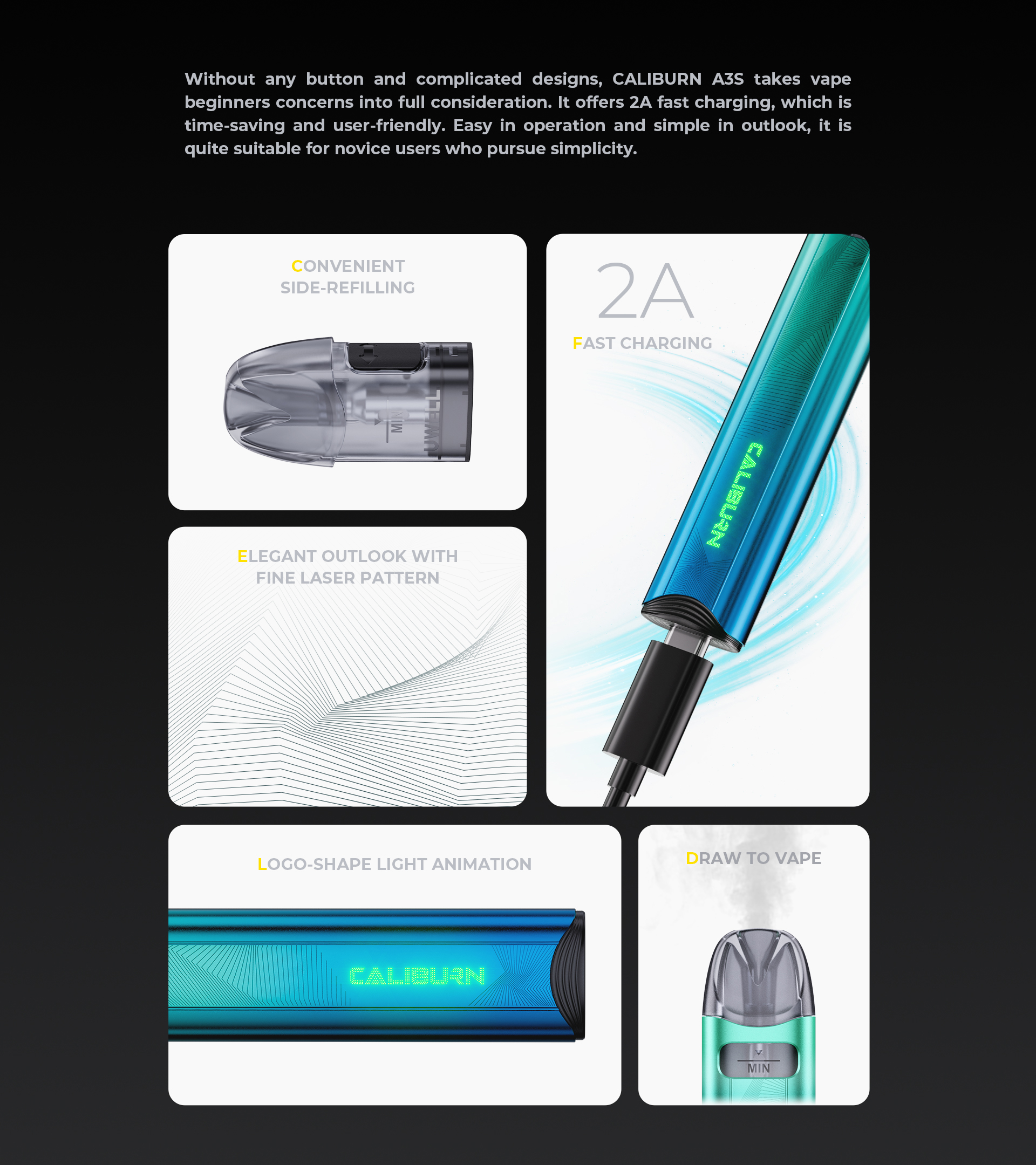 Uwell Caliburn A3S 是一款設計精緻、操作簡便的電子煙設備,適合追求簡約與高效的使用者。