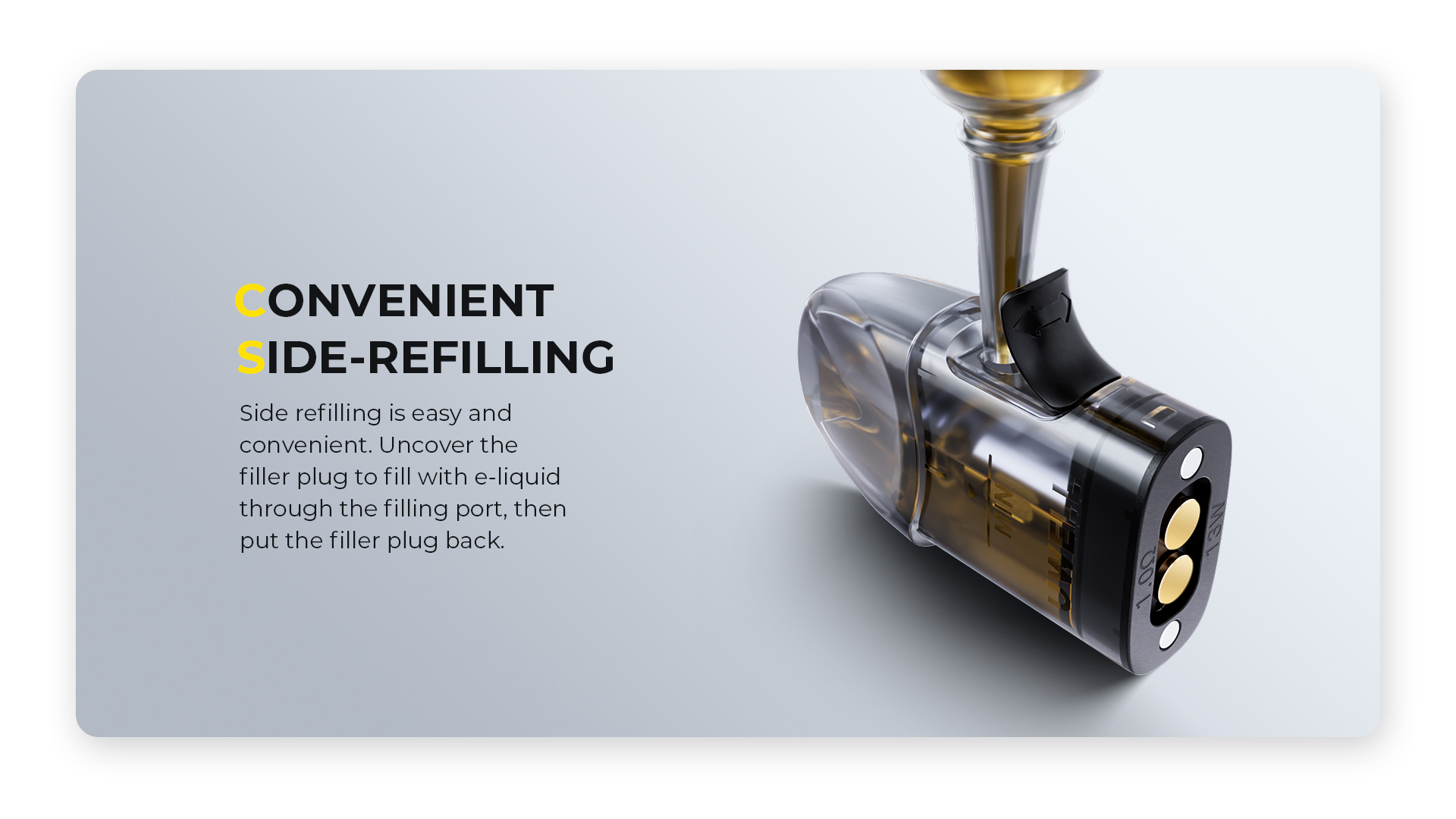 - 側面填充設計:2ml 可填充煙彈,側面填充,方便快捷。