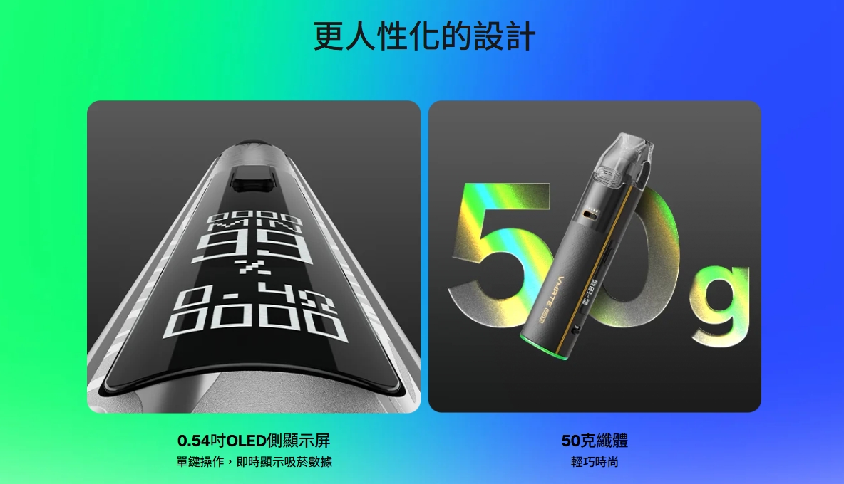 配備 頂部注油防漏艙 與 0.54″ OLED 側顯,帶來更直覺的使用體驗。